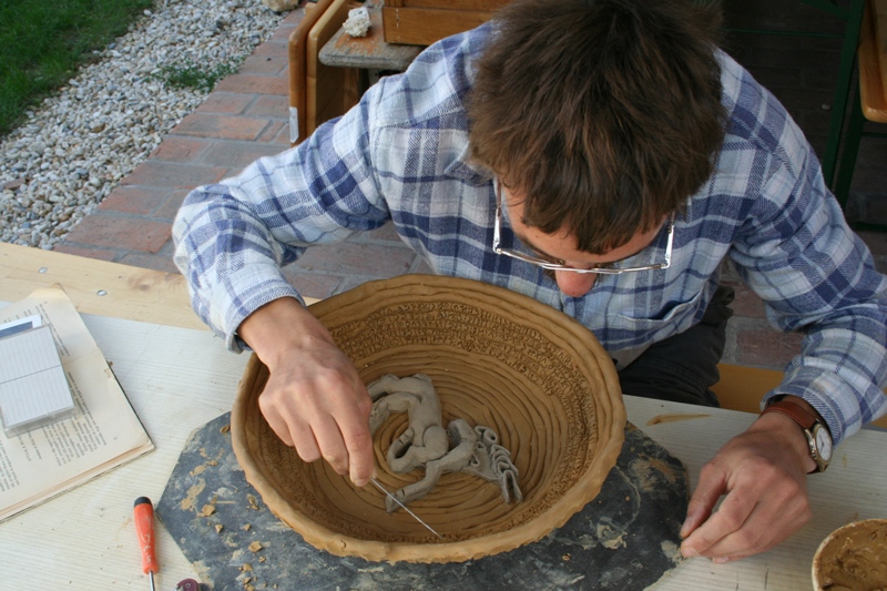 Első alkalom: adott technika használatát bemutatjuk, a megbeszélt tárgy elkészítését segítjük. Egy órán több tárgy is készíthető, ami mérettől és nehézségi foktól függ. Második alkalom: az előző órán készített tárgyakat szivacsoljuk, ha korongon készült, akkor esztergáljuk és földfestékkel festjük, hogy színes és mintás legyen. Amikor kiszáradt, berakjuk a kemencébe 960C fokra. Ezt első/zsenge égetésnek hívjuk. Amikor kiégett, nem lesz fényes, de már nem visszaáztatható. Első égetés után lehet mázazni, amivel újra égetni kell. Az első tárgyadat 3-4 hét után tudod hazavinni.